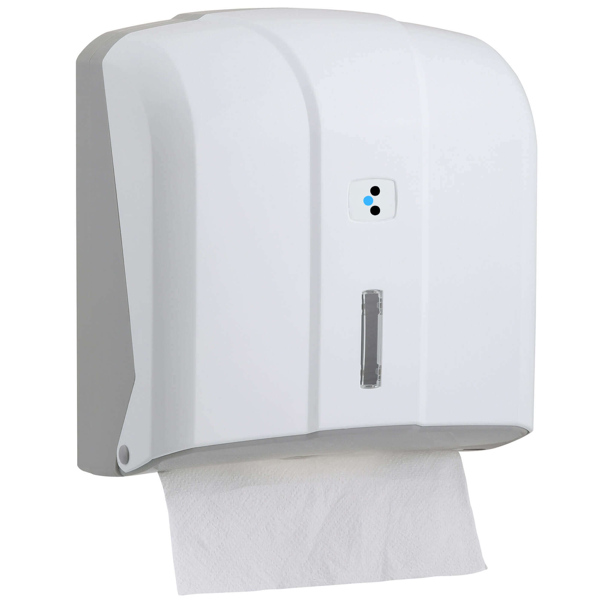 Duża pojemność podajnika sprawia, że urządzenie doskonale sprawdza się w miejscach o wysokim natężeniu ruchu, ograniczając częstotliwość uzupełniania. Praktyczny wizjer umożliwia szybką kontrolę poziomu ręczników, co ułatwia pracę personelu sprzątającego.