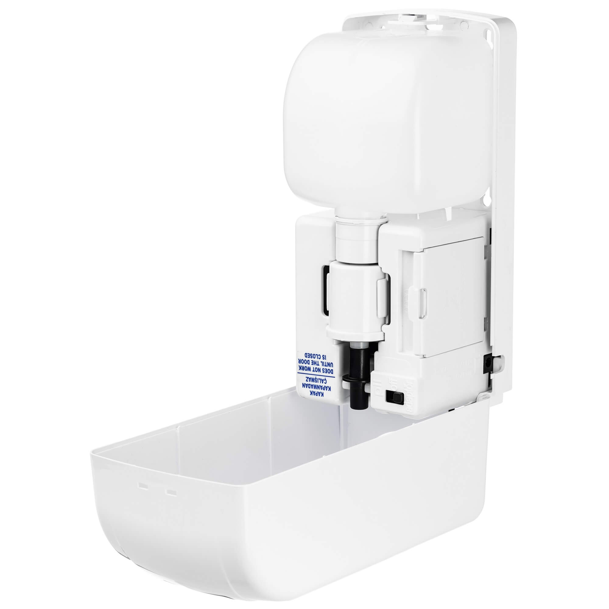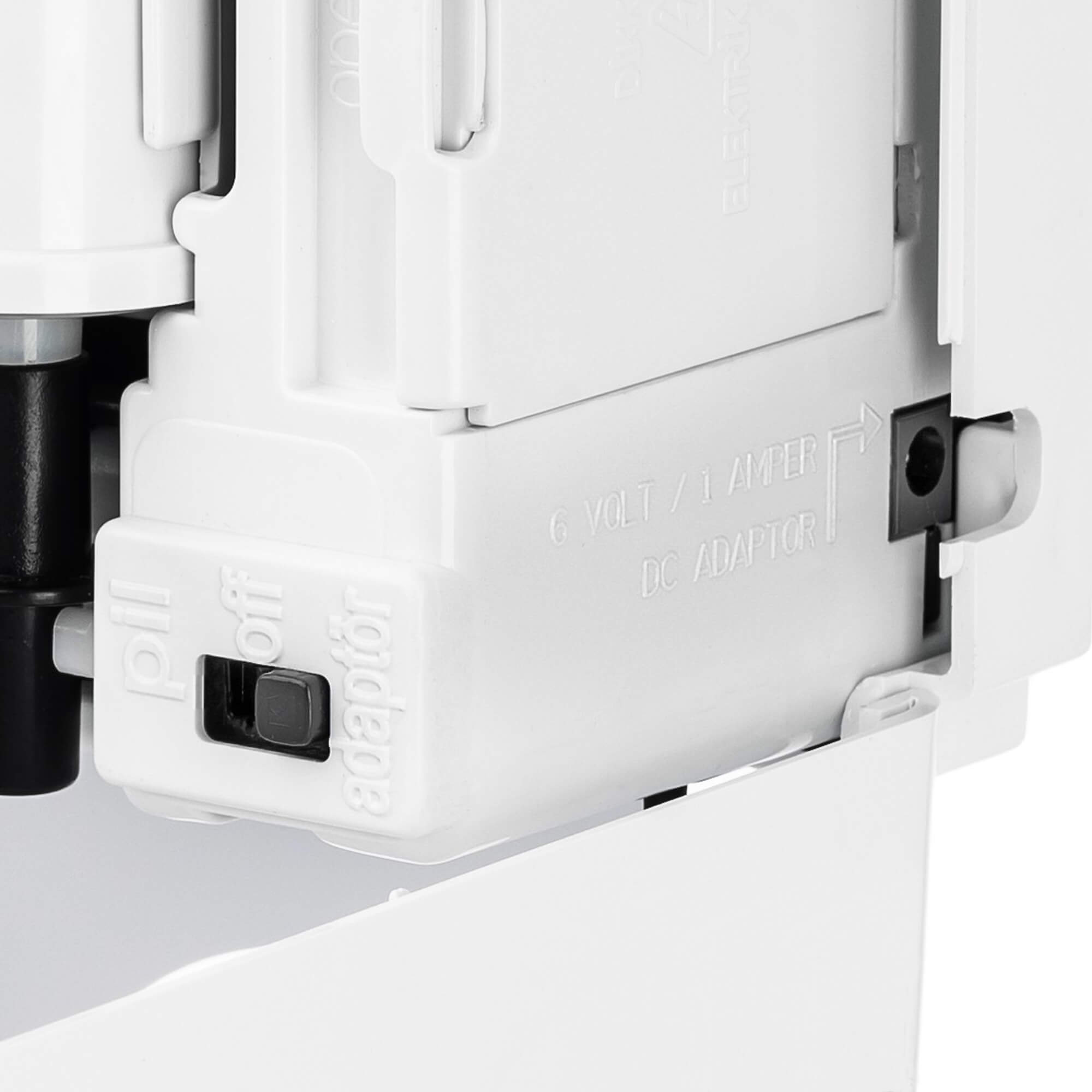 Dozownik środka dezynfekującego jest sterowany automatycznie, co zapewnia higieniczne użytkowanie bez konieczności dotykania urządzenia. Montaż na ścianie pozwala na oszczędność miejsca, a możliwość zasilania zarówno za pomocą baterii, jak i sieci sprawia, że instalacja jest elastycznym i wygodnym rozwiązaniem.